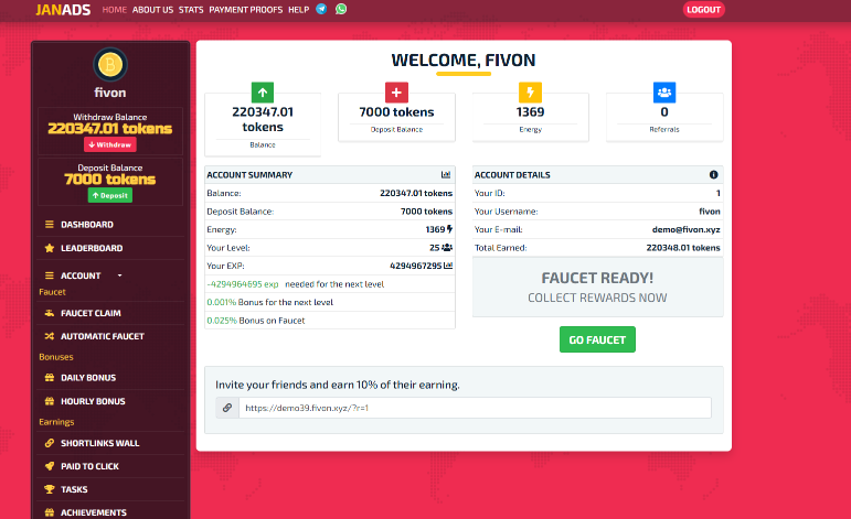With Janads Faucet Software, making money from your faucet becomes easier than ever. Integrate ads, shortlinks, and popups for multiple income channels. Combine that with a solid referral system, and you have a traffic-building machine that generates profit while rewarding users.
