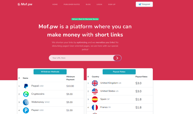MofPW is a powerful and modern Short Link and Earn Money Software built with PHP, designed for those who want to monetize their links easily and effectively. It works similarly to the popular AdLinkFly Script, allowing users to shorten URLs and earn money for every visit generated through their links.