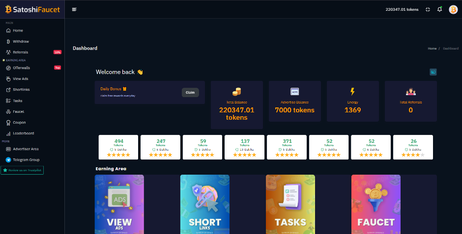 With SatoshiFaucet Faucet Software, you can automate payouts, manage users efficiently, and monetize your faucet through ads, referral programs, and shortlinks. Its modular design and responsive interface make it perfect for both new and experienced crypto faucet operators.